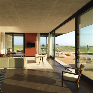 There are two 18-hole championship links-style golf courses along with a 9-hole academy course, all designed by leading architect Kyle Phillips, six tennis courts, a full- size football pitch, a 60m infinity swimming pool, a fully-equipped gym and running trails which meander through the olive and lemon groves.